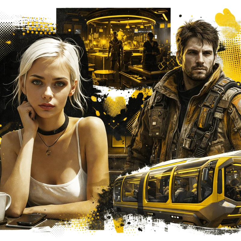 Jo glances back towards the bar one more time. The pilot’s still there, now shrugging off his flight jacket in that unselfconscious way people do when they’re between one state and another – between shifts, between shirts, between wherever they’ve been and wherever they’re going next. The night could become wild, she thought, if they stayed. If she went over there and said something clever or interesting or even just honest. If she asked about the patches on his jacket or where he’s flown in from or whether he’d ever consider taking on a passenger with agricultural skills and an excessive desire to leave the planet. But Mira was already heading towards the door, and Jo was twenty-three and responsible and had irrigation schedules to review in the morning. She turns away from the possibility and follows her friend into the exit lane.